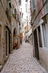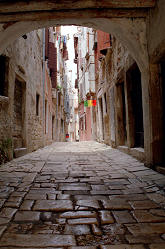 Rovinj ist wohl die am stärksten italienisch geprägte Stadt Istriens. Die vom Wasser fast vollständig umspülte Altstadt hat sich ihr ursprüngliches Erscheinungsbild, wie man auf den nächsten Bildern sehen kann, fast vollständig bewahrt. | ||||