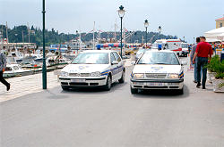 | Und hier sieht man einen Teil der "Flotte" unserer Begleitfahrzeuge. Zur damaligen Zeit wahrscheinlich ein Teil der modernsten Plozeifhrzeuge Istriens. Die Polizeifahrzeuge begleiteten die Radltour, sperrten Straßen und Kreuzungen und sorgten somit für einen reibungslosen und unfallfreien Verlauf der Tour. | |